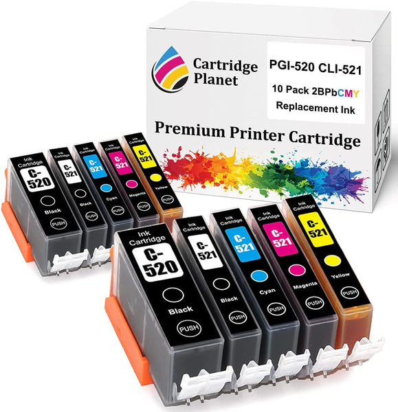10 Pack (2BK,2PBK,2C,2M,2Y) Compatible Ink for Canon PGI-520 CLI-521 PGI520 CLI521 for Canon IP3600 IP4600 IP4700 MP540 MP550 MP560 MP620 MP630 MP640 MP980 MP990 MX860 MX870