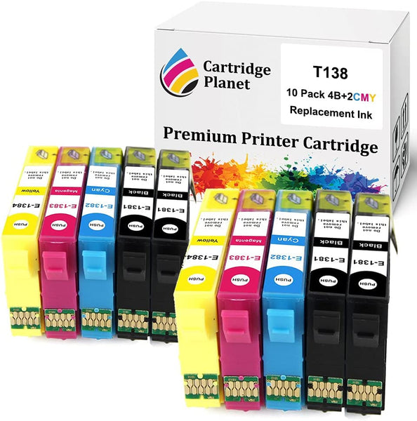 10 Pack (4BK,2C,2M,2Y) Compatible Ink for Epson 138 T1381 T1382 T1383 T1384 for Epson NX230 NX420 NX430 NX635 WorkForce 320 325 435 525 545 60 625 630 633 645 7010 7510 7520 840 845 WF-3520 WF-3530 WF-3540