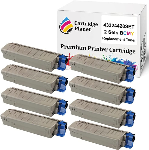 Includes 2 Lots of 4 Pack of Compatible Toner Cartridge for OKI 43324428 43324427 43324426 43324425 Approx. 6000/5000(BK/CMY) Pages at 5% coverage For use in printer: OKI C5550MFP C5800 C5900 View more
