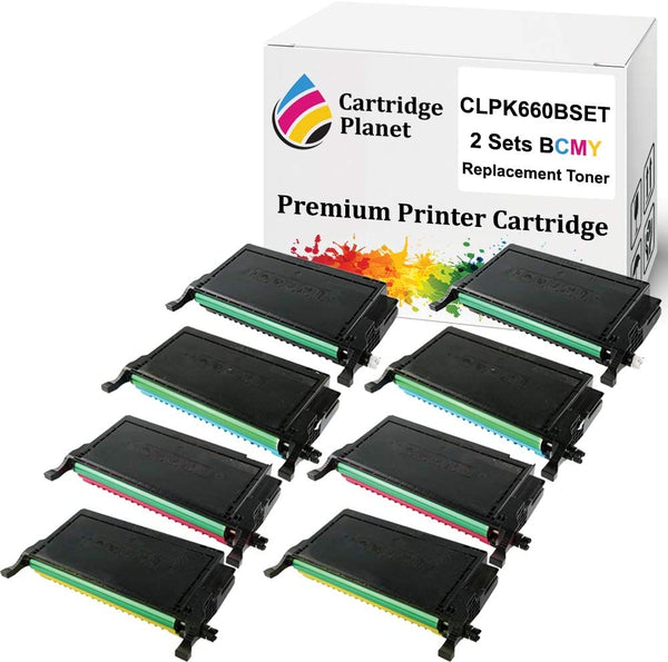 Includes 2 Lots of 4 Pack of Remanufactured Toner Cartridge for Samsung CLP-K660B CLP-C660B CLP-M660B CLP-Y660B ST907A ST886A ST925A ST960A Approx. 5500/5000 (BK/CMY) pages at 5% coverage For use in printer: Samsung CLP610ND CLP660N CLP660ND CLX6200FX CLX6200ND CLX6210FX CLX6240FX View more