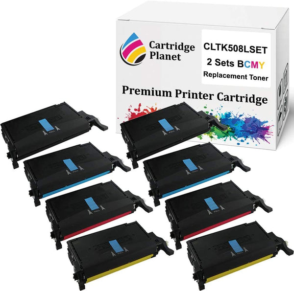 Includes 2 Lots of 4 Pack of Remanufactured Toner Cartridge for Samsung CLT-K508L CLT-C508L CLT-M508L CLT-Y508L SU191A SU058A SU325A SU535A Approx. 5000/4000 (BK/CMY) pages at 5% coverage For use in printer: Samsung CLP620ND CLP670N CLP670ND CLX6220FX CLX6250FX View more
