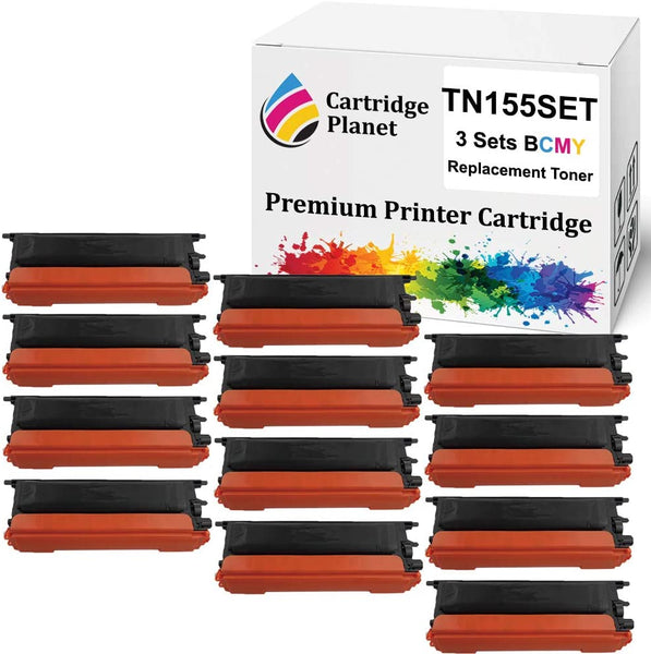 Includes 3 Lots of 4 Pack of Compatible Toner Cartridge for Brother for TN-155 TN155BK TN155C TN155M TN155Y Approx. 5,000/4,000 (B/CMY) pages at 5% coverage For use in printer: Brother DCP9040CN DCP9042CDN HL4040CN HL4050CDN MFC9440CN MFC9450CDN MFC9840CDW View more