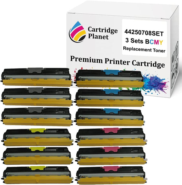 Includes 3 Lots of 4 Pack of Compatible Toner Cartridge for OKI 44250708 44250707 44250706 44250705 Approx. 2,500 Pages at 5% coverage For use in printer: OKI C110 C130n MC160n View more