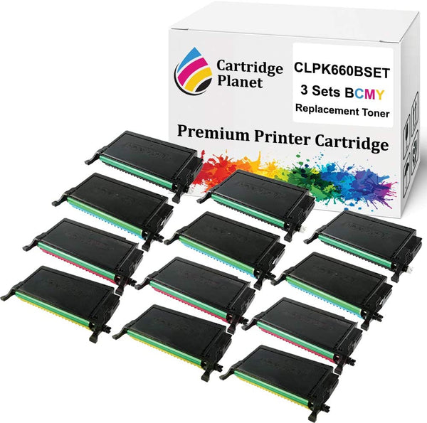 Includes 3 Lots of 4 Pack of Remanufactured Toner Cartridge for Samsung CLP-K660B CLP-C660B CLP-M660B CLP-Y660B ST907A ST886A ST925A ST960A Approx. 5500/5000 (BK/CMY) pages at 5% coverage For use in printer: Samsung CLP610ND CLP660N CLP660ND CLX6200FX CLX6200ND CLX6210FX CLX6240FX View more