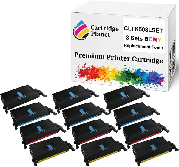 Includes 3 Lots of 4 Pack of Remanufactured Toner Cartridge for Samsung CLT-K508L CLT-C508L CLT-M508L CLT-Y508L SU191A SU058A SU325A SU535A Approx. 5000/4000 (BK/CMY) pages at 5% coverage For use in printer: Samsung CLP620ND CLP670N CLP670ND CLX6220FX CLX6250FX View more