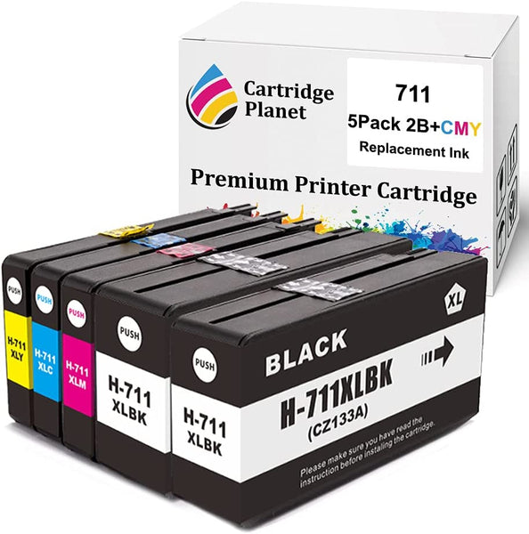 5 Pack (2BK,1C,1M,1Y) Compatible Ink for HP 711 for HP Designjet T100 T120 T125 T130 T520 T525 T530