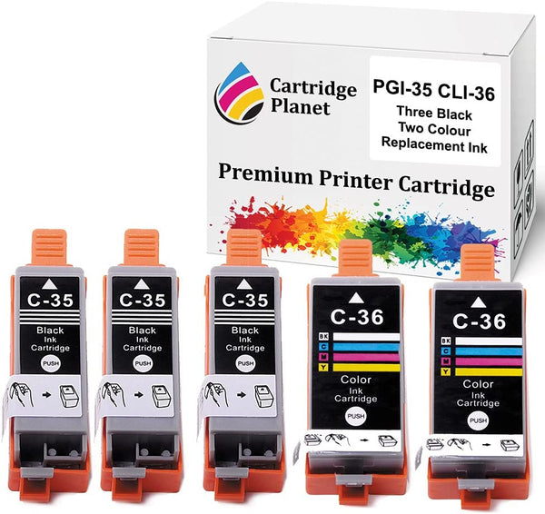 5 Pack (3BK,2C) Compatible Ink for Canon PGI-35BK CLI-36C PGI35BK CLI36C for Canon IP100 IP110 TR150