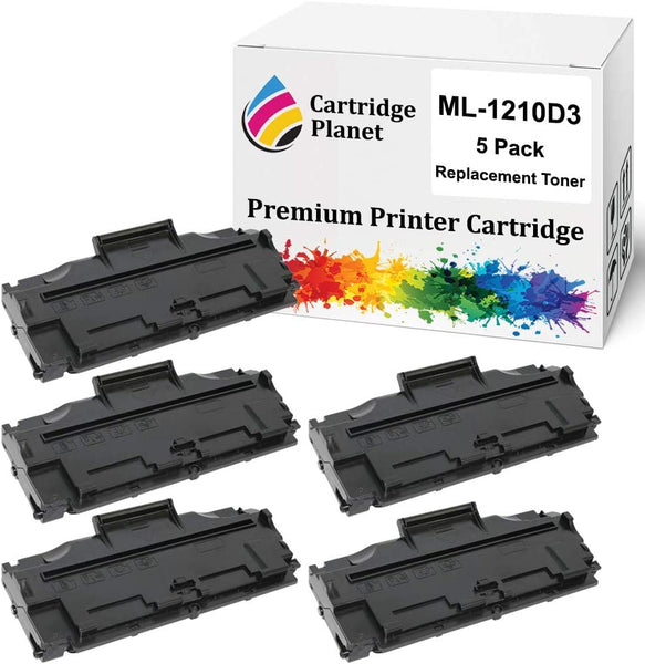 Includes 5 of Compatible Toner Cartridge for Samsung ML-1210D3 ML1210D3 Approx. 2500 pages at 5% coverage For use in printer: Samsung ML1010 ML1210 ML1220M ML1250 ML1430 View more