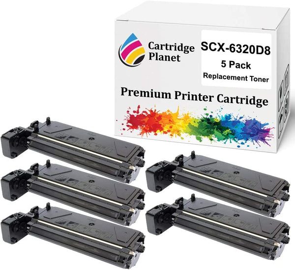 Includes 5 of Compatible Toner Cartridge for Samsung SCX-6320D8 SCX6320D8 Approx. 8,000 pages at 5% coverage For use in printer: Samsung MultiXpress SCX6122FN MultiXpress SCX6322DN SCX6220 SCX6320F View more