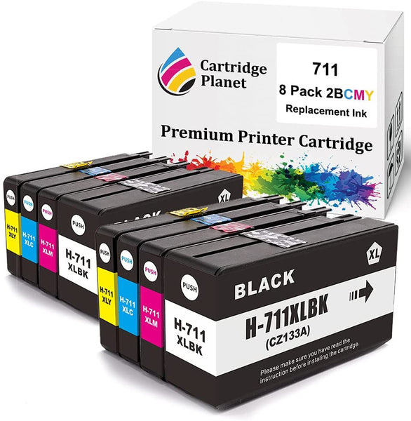8 Pack (2BK,2C,2M,2Y) Compatible Ink for HP 711 for HP Designjet T100 T120 T125 T130 T520 T525 T530