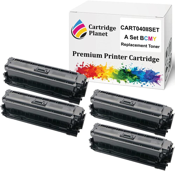 Includes 4 Pack of Compatible Toner Cartridge for Canon CART040BKII CART040CII CART040MII CART040YII CART-040II Approx. 12,500/10,000 (B/CMY) pages at 5% coverage For use in printer: Canon imageCLASS LBP712cx View more