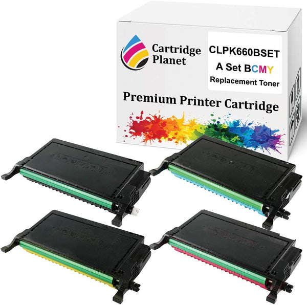 Includes 4 Pack of Remanufactured Toner Cartridge for Samsung CLP-K660B CLP-C660B CLP-M660B CLP-Y660B ST907A ST886A ST925A ST960A Approx. 5500/5000 (BK/CMY) pages at 5% coverage For use in printer: Samsung CLP610ND CLP660N CLP660ND CLX6200FX CLX6200ND CLX6210FX CLX6240FX View more