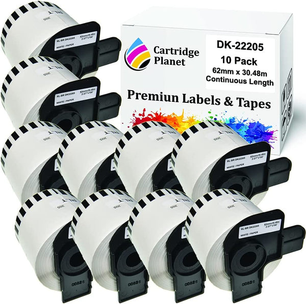 10 Pack Compatible Tape Roll for Brother DK-22205 DK22205 62mm x 30.48m Continuous Length for Brother QL1050 QL1050N QL1060N QL1100 QL1110NWB QL500 QL550 QL570 QL580N QL650TD QL700 QL720NW QL800 QL810W QL820NWB Label Printer