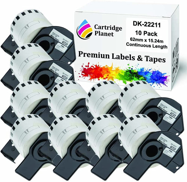 10 Pack Compatible Tape Roll for Brother DK-22212 DK22212 62mm x 15.24m Continuous Length for Brother QL1050 QL1050N QL1060N QL1100 QL1110NWB QL500 QL550 QL570 QL580N QL650TD QL700 QL720NW QL800 QL810W QL820NWB Label Printer