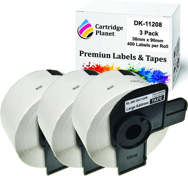 3 Pack Compatible Label Roll for Brother DK-11208 DK11208 38mm x 90mm 400 Labels per Roll for Brother QL1050 QL1050N QL1060N QL1100 QL1110NWB QL500 QL550 QL570 QL580N QL650TD QL700 QL720NW QL800 QL810W QL820NWB Label Printer