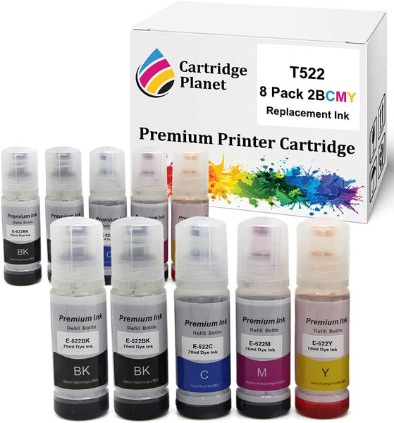10 Pack (4BK,2C,2M,2Y) Compatible Ink for Epson T522 for Epson EcoTank ET-1110 Expression ET-2710 Expression ET-2720 Workforce ET-4700