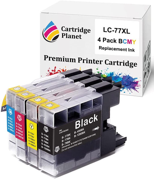 Package includes 1 x black, 1 x cyan, 1 x magenta, 1 x yellow Compatible Model: LC-77XLBK LC-77XLC LC-77XLM LC-77XLY Approx. 2400/1200 (B/CMY) pages at 5% coverage For use in printer: Brother MFCJ5910DW MFCJ6510DW MFCJ6710DW MFCJ6910DW View more