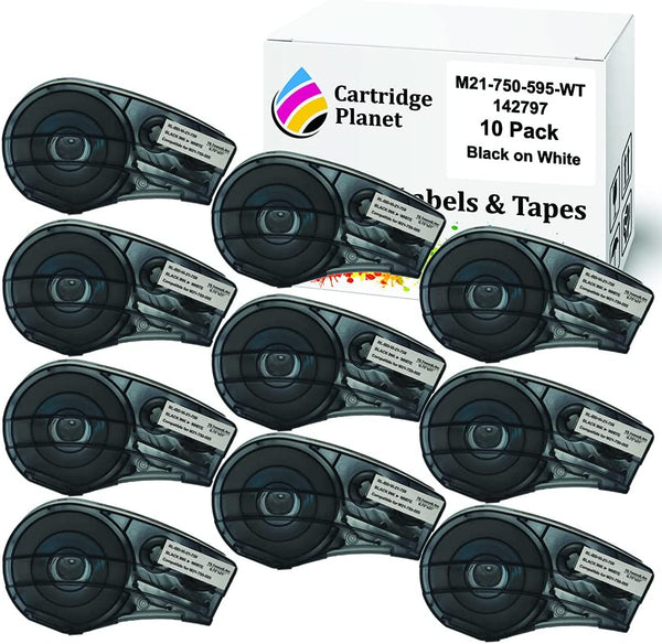 10 Pack Compatible M21-750-595-WT 142797 Black on White B-595 Durable Vinyl Material Label for BMP21-Plus BMP21-LAB Label Printer