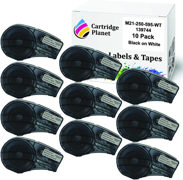 10 Pack Compatible M21-250-595-WT 139744 Black on White B-595 Durable Vinyl Material Label for BMP21-Plus Label Printer