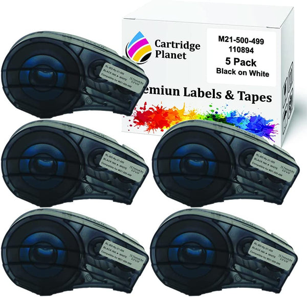 5 Pack Compatible M21-500-499 110894 Black on White B-499 Nylon Cloth Label for BMP21-Plus BMP21-LAB Label Printer