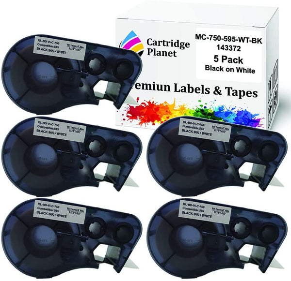 5 Pack Compatible MC-750-595-WT-BK 143372 Black on White B-595 Durable Vinyl Material Label for BMP41 BMP51 BMP53 Label Printer